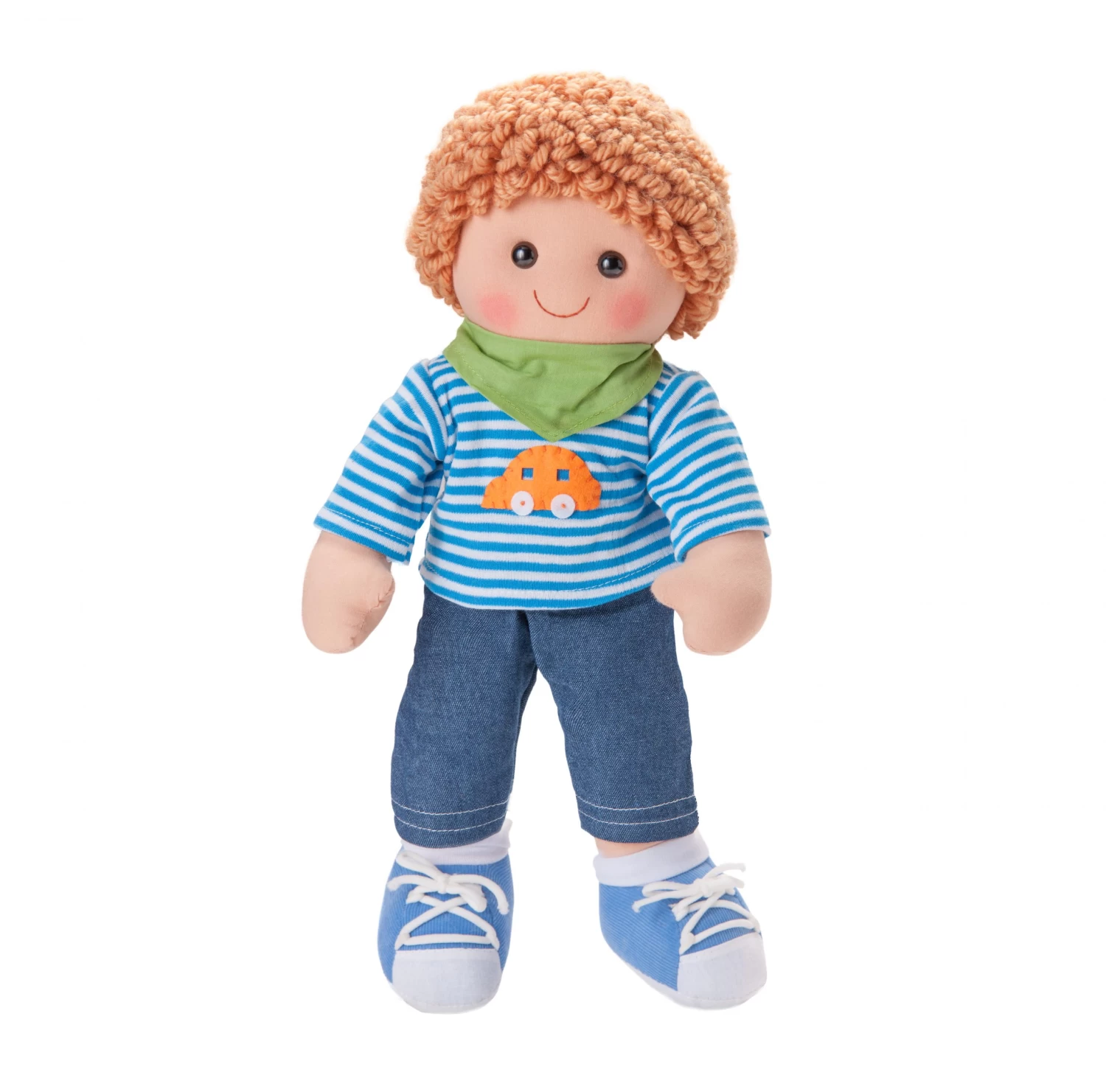 Nils is een lieve zachte knuffelpop. Hij heeft een vrolijke snoet en draagt een spijkerbroek, een gestreept shirt met applicatie en bijpassende schoentjes. De kleding kan aan- en uitgetrokken worden en is met de hand uitwasbaar. Nils is heerlijk om mee te spelen en te knuffelen.