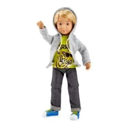 Deze poppenset van de Kruselings bevat Michael in zijn dagelijkse outfit met een haarborstel. Michael komt uit Berlijn. Hij heeft blond haarΒ haar en blauwe ogen. Hij draagt een geel T-shirt, een spijkerbroek, een grijze hoodie en blauwe sneakers met gele veters. Als extra heeft hij ook zijn eigen haarborstel.